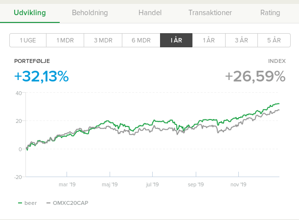This year has been an amazing stock year. My stock has gained over 32 % in value and that is much higher that the index (4th year when I beat the index). And I have gained over 37.000 dkk in dividends.