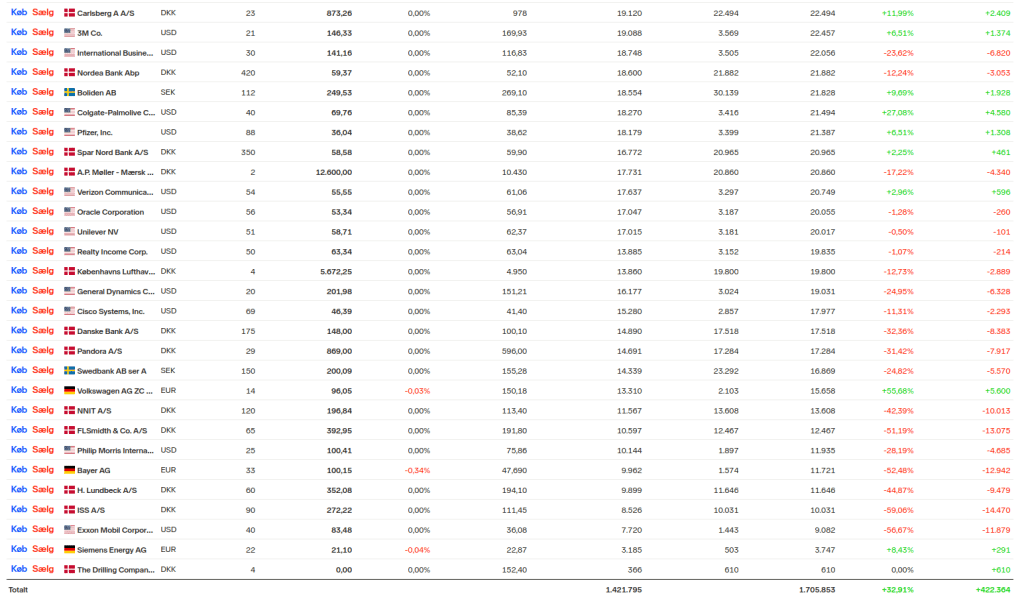 Jeg har vedlagt screenshot af alle mine aktier så I kan selv kan se hvor godt/dårlgit jeg har klaret mig