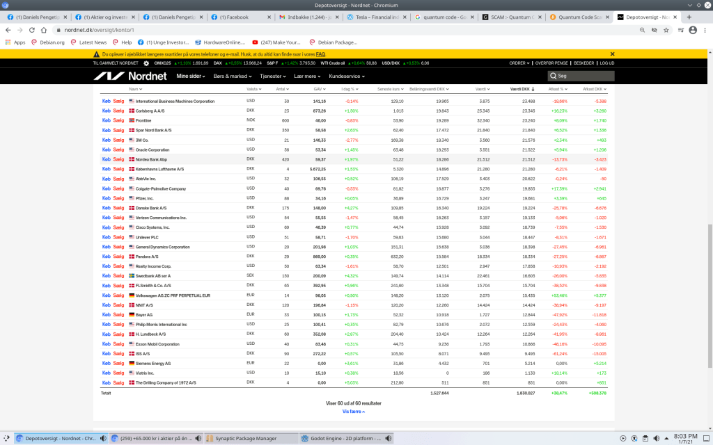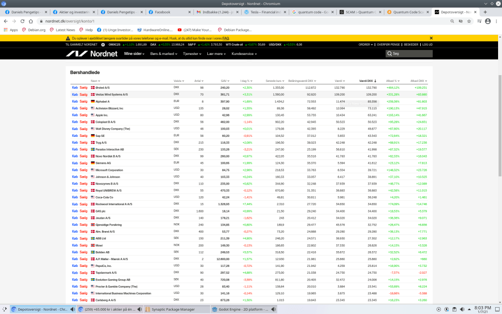 Så er jeg rundt en halv million på aktie prisstigninger beers119 Uncategorized January 7, 2021 1 Minute Så jeg klapper mig selv lidt på skulderen og nyder en kold cola. Share this: Click to share on X (Opens in new window) X Click to share on Facebook (Opens in new window) Facebook Like Loading... Related Published by beers119 View all posts by beers119 Published January 7, 2021