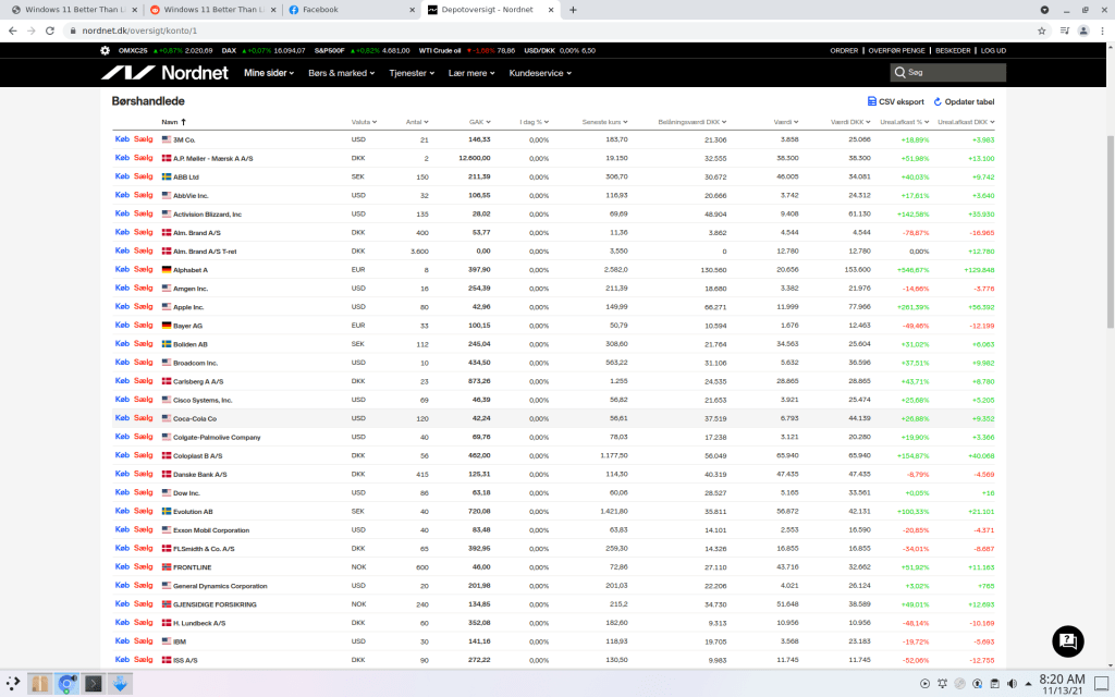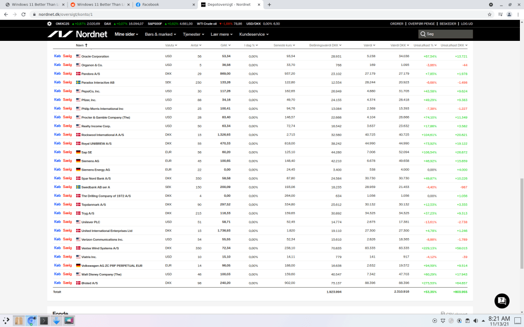 Jeg har nu passeret 2.300.000 dkk i aktie forume hvoraf over 800.000 dkk af dem skyldes aktie pris stigninger. Derudover har jeg fået 188.000 dkk i udbytte siden 2014.