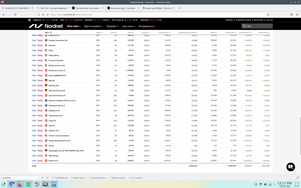 I skrivene stund er mit portfolio på 2.365.003 dkk hvoraf 637.049 dkk ikke er relisret endnu.