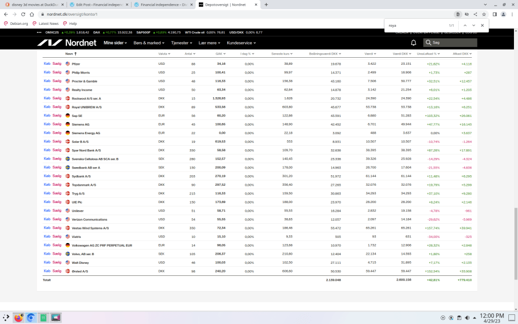 Jeg har fået lavet et nyindkøbt (15 aktier) i AstraZeneca PLC: https://financialindependent.finance.blog/2023/04/28/astrazeneca-plc/ samt supplereret op i Royal Unibrew (34 nye aktier er tilføje): https://financialindependent.finance.blog/2023/04/17/suppleret-op-i-royal-unibrew/