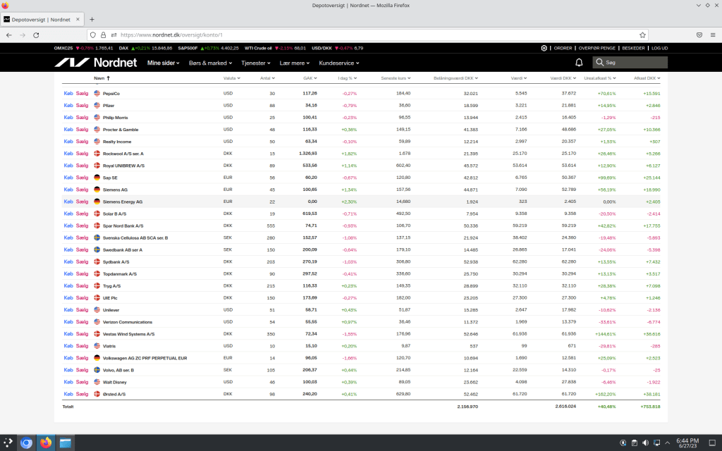 I denne omgang har jeg valgt at købe op i D/S Norden ( https://www.nordnet.dk/markedet/aktiekurser/16099961-ds-norden ) som er et rederi virksomhed.