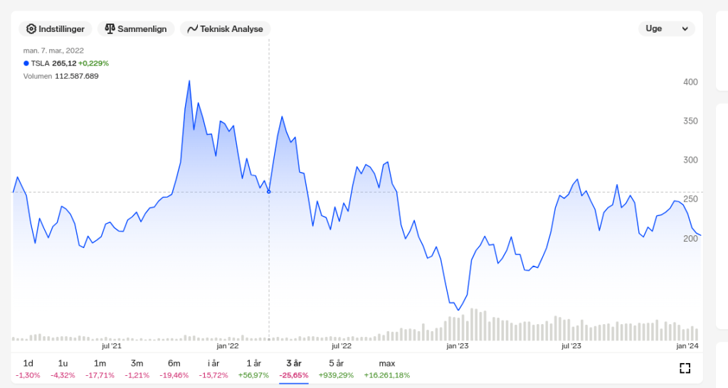 Igennem de sidste 3 år har Tesla tabt over 25% i værdi: