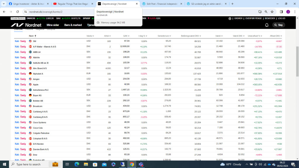 På mindre end 3 år er jeg gået fra 2 mio til 3 mio i aktie værdi. Sådan så min aktie portfolio ud da jeg ramte 2 mio: https://financialindependent.finance.blog/2021/04/15/sa-rundede-jeg-en-aktie-vaerdi-pa-2-mio/