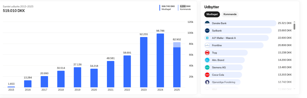 Der ud over har jeg 9.266 dkk annonceret udbytte som ikke er kommet endnu