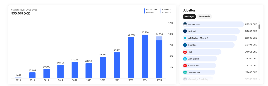 Der ud over har jeg 8.702 dkk annonceret udbytte som ikke er kommet endnu