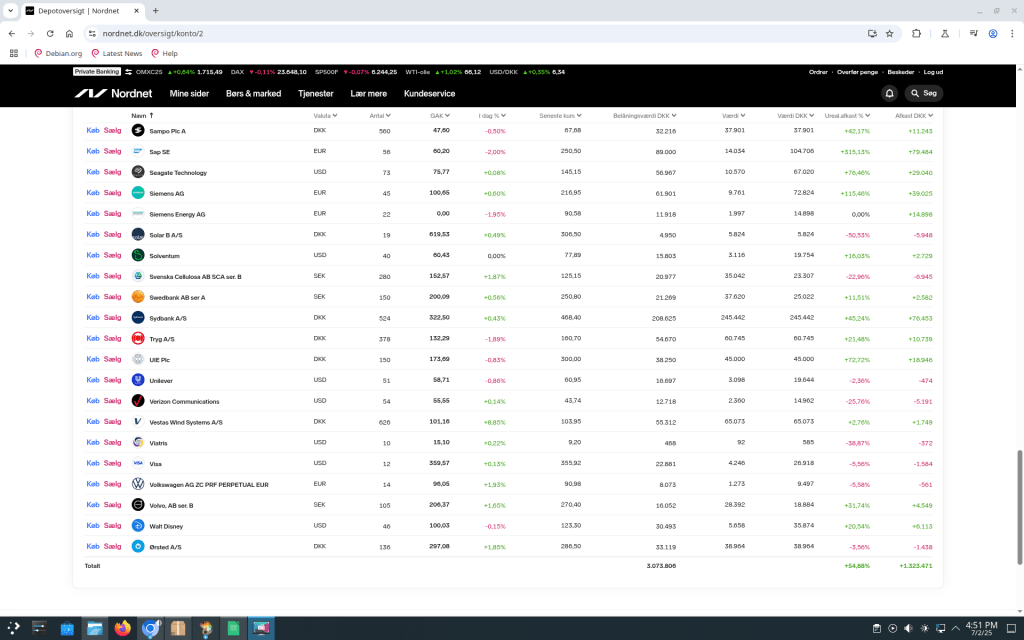 I skrivene stund er mit portfolio på 3.806.992  dkk hvoraf 1.403.777  dkk ikke er reliseret endnu. Det er en stigning på hhv 460290 dkk og 460290 dkk fra sidste år: https://financialindependent.finance.blog/2024/05/04/udbytte-i-april-2024/