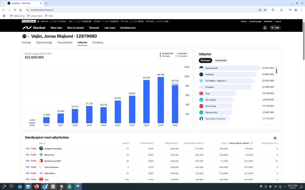 Der ud over har jeg 7.101  dkk annonceret udbytte som ikke er kommet endnu