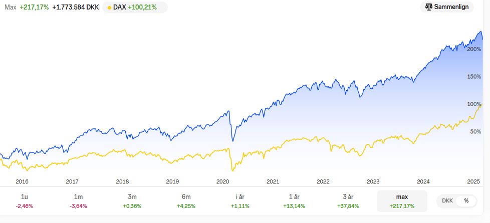 Det skal siges at faldet hovedsageligt skyldes at Topdanmark A/S (nu kendt som Sampo), Gjensidige Forsikring og Nordea Bank AB (sidste år gav de mig 5265.66 i april 2024)) har andet udbytte måned i år. Så jeg kan vel kun være glad`?