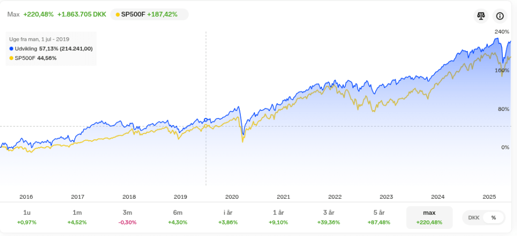 Man siger det er svært at vælge aktier og stadig slå index men det lader til jeg har slået S&P 500. Om det er fordi jeg er dygtigt eller heldig må tiden vise.